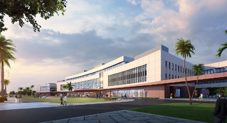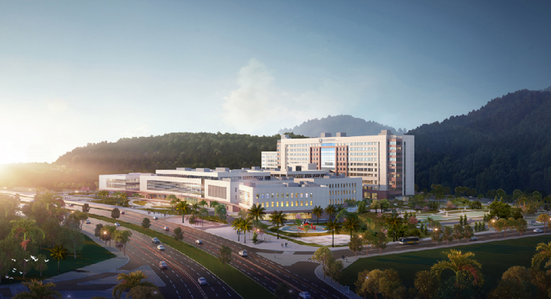 醫院位于深汕特別合作區鵝埠鎮。用地面積約為9.25萬平方米,總建筑面積15.8萬平方米,建設內容包括感染樓、門診醫技樓、科研樓、住院樓、綜合樓等。項目總投資估算約為14億元,將建成集醫療、科研、教學、預防、保健等功能于一體的綜合醫院。