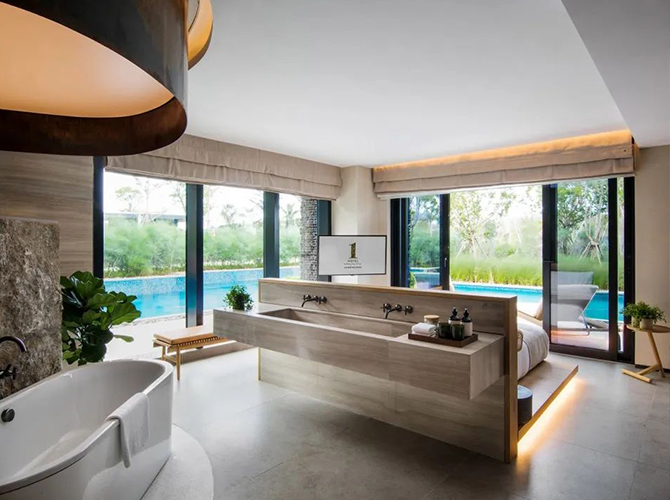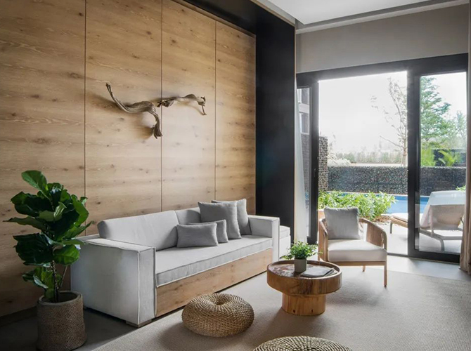 星級酒店 該項目位于景色宜人的著名旅游城市“三亞”。該項目重點工程三亞海棠灣陽光壹酒店1 Hotels以自然及可持續(xù)發(fā)展為本,擁有294間面積達62至1,300平方米的客房、套房及復式別墅?;貧w自然、簡約原始的設計風格,巧妙搭配多種未經拋光的當地天然石材和木材,打造渾厚多元的紋理及細膩和諧的配色,輔以原木打造的凳子、書桌、藤編地毯、融進自然的定制藝術品以及有機棉裝飾等,純粹而時尚。