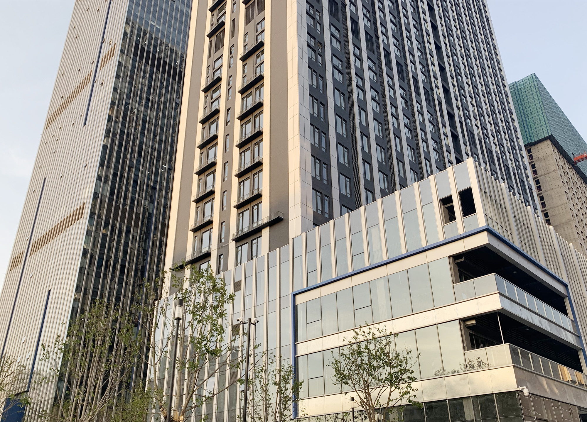 T2樓為辦公商用樓,建設(shè)用地東臨長(zhǎng)興路,南臨廣北街。地上32層,地下3層,高度為149.05米,主樓結(jié)構(gòu)形式為幕墻結(jié)構(gòu),裙樓結(jié)構(gòu)形式為框架結(jié)構(gòu)。